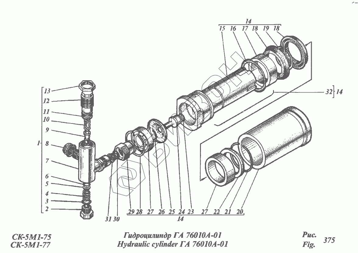 Графический каталог запасных частей к технике: РСМ CK-5М-1 «Нива». Гидроцилиндр ГА-76010А-01