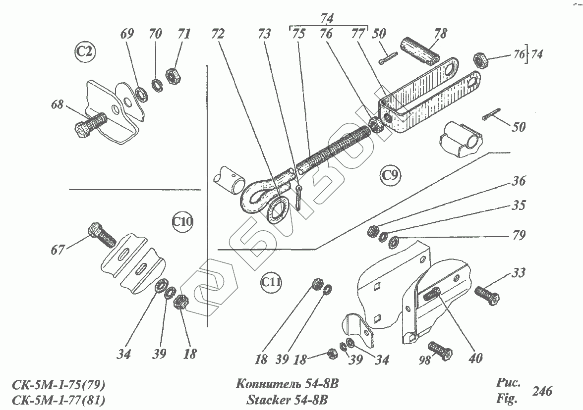 Графический каталог запасных частей к технике: РСМ CK-5М-1 «Нива». Копнитель 54-8В