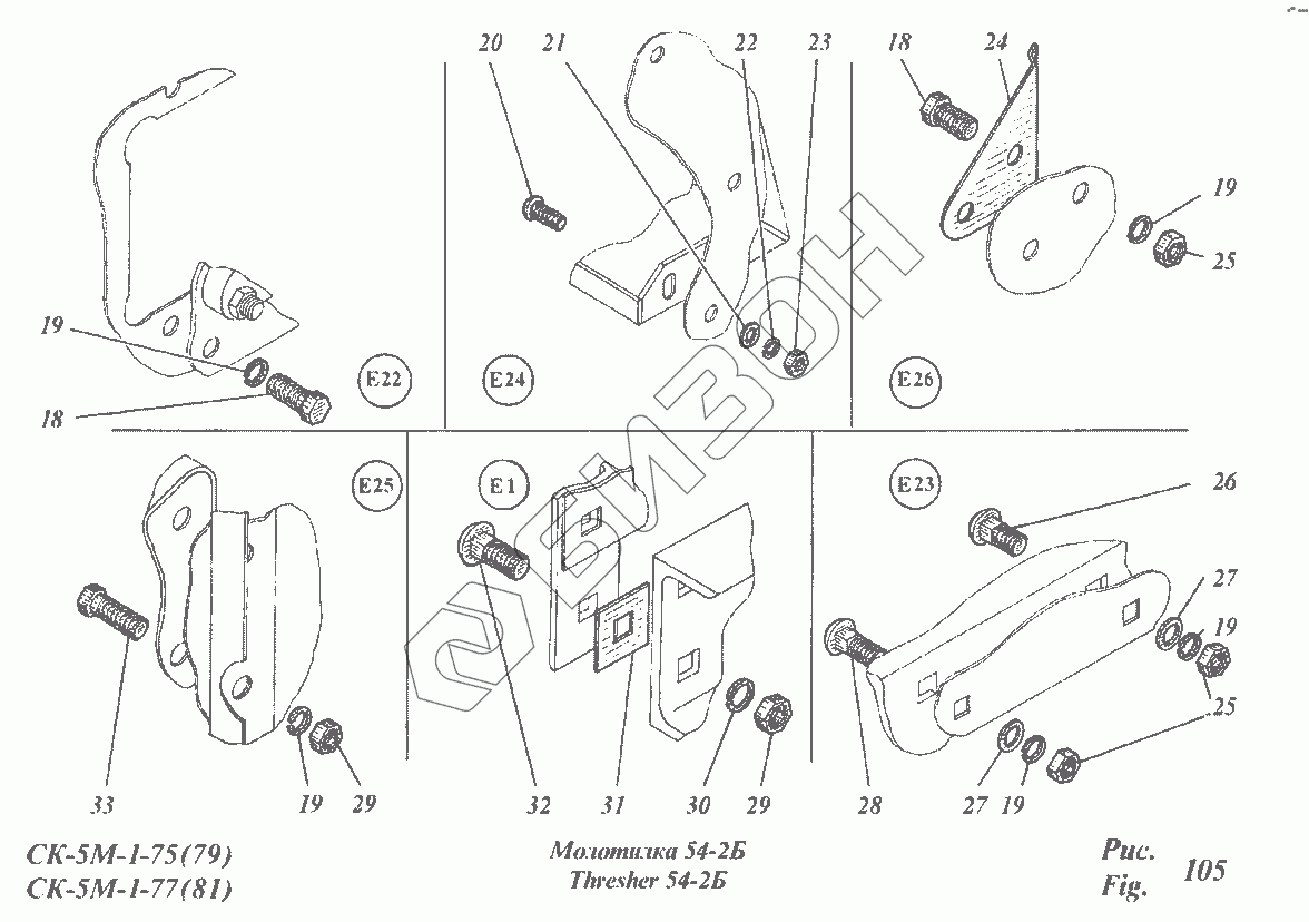 Графический каталог запасных частей к технике: РСМ CK-5М-1 «Нива». Молотилка 54-2Б