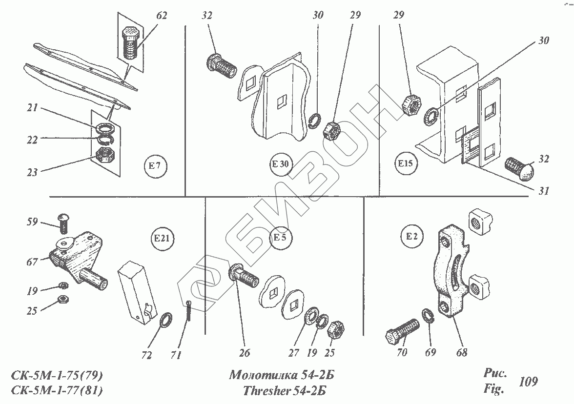 Графический каталог запасных частей к технике: РСМ CK-5М-1 «Нива». Молотилка 54-2Б