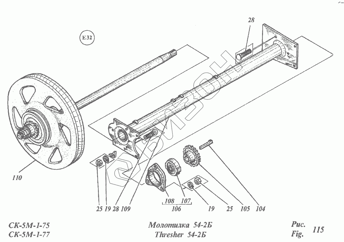 Графический каталог запасных частей к технике: РСМ CK-5М-1 «Нива». Молотилка 54-2Б