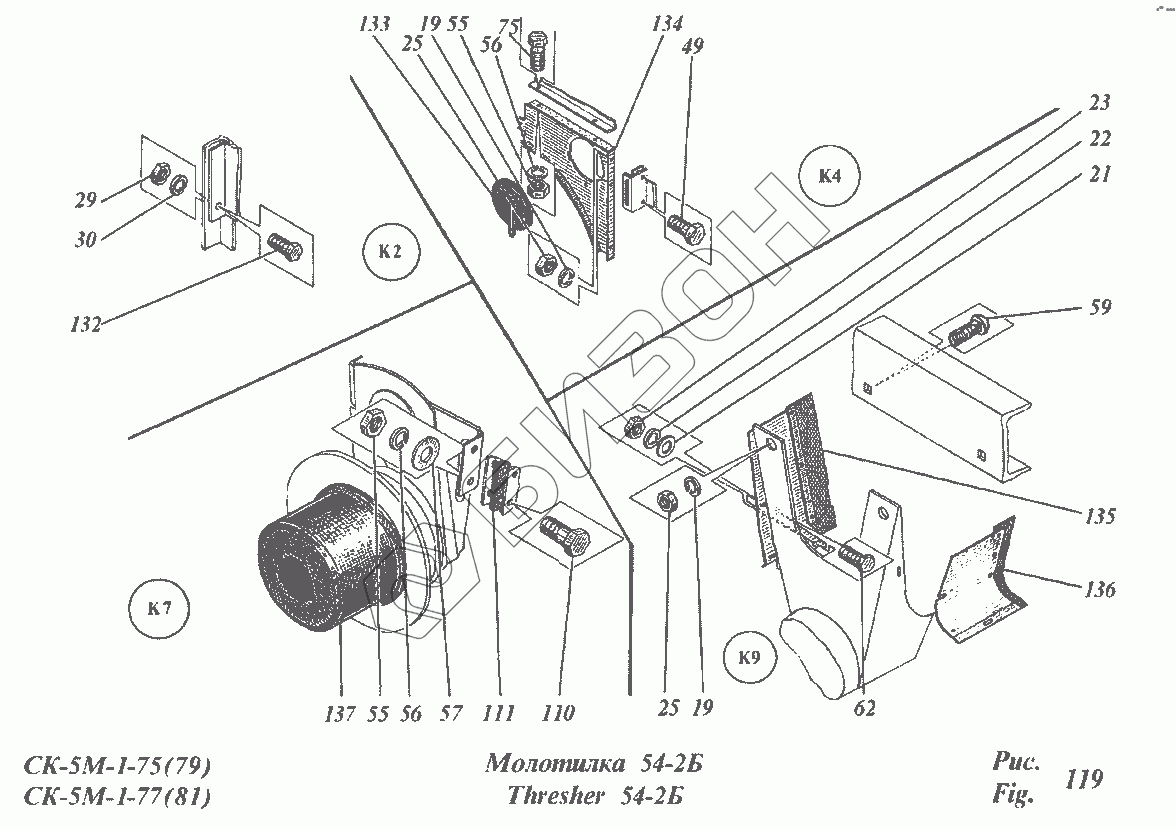 Графический каталог запасных частей к технике: РСМ CK-5М-1 «Нива». Молотилка 54-2Б