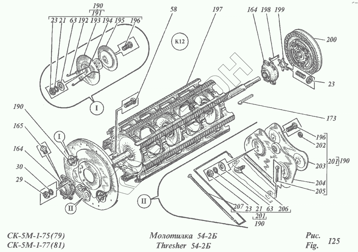 Графический каталог запасных частей к технике: РСМ CK-5М-1 «Нива». Молотилка 54-2Б