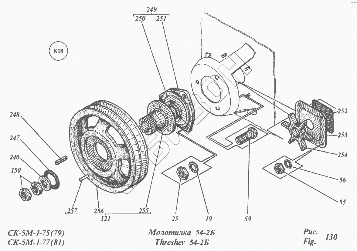 Графический каталог запасных частей к технике: РСМ CK-5М-1 «Нива». Молотилка 54-2Б