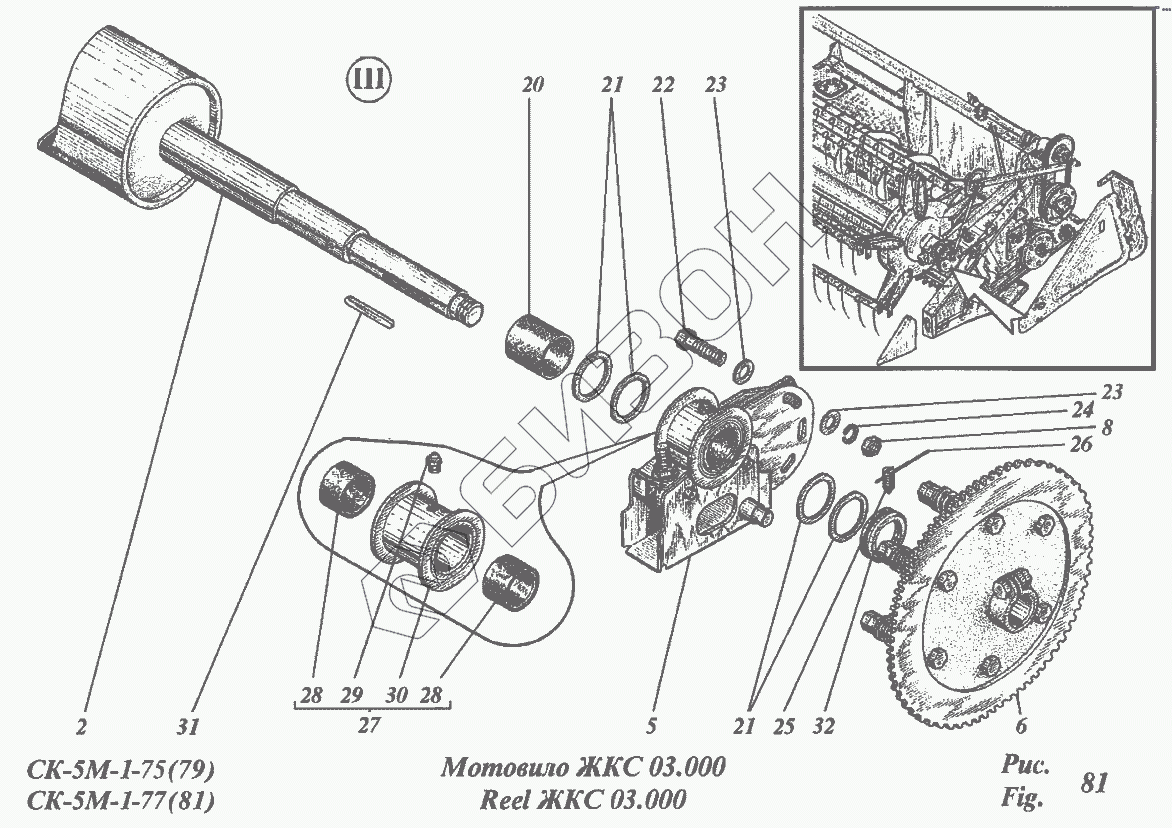 Графический каталог запасных частей к технике: РСМ CK-5М-1 «Нива». Мотовило ЖКС 03.000