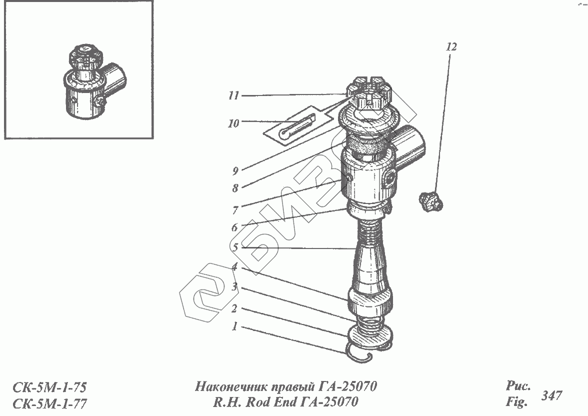 Графический каталог запасных частей к технике: РСМ CK-5М-1 «Нива». Наконечник левый ГА-25050