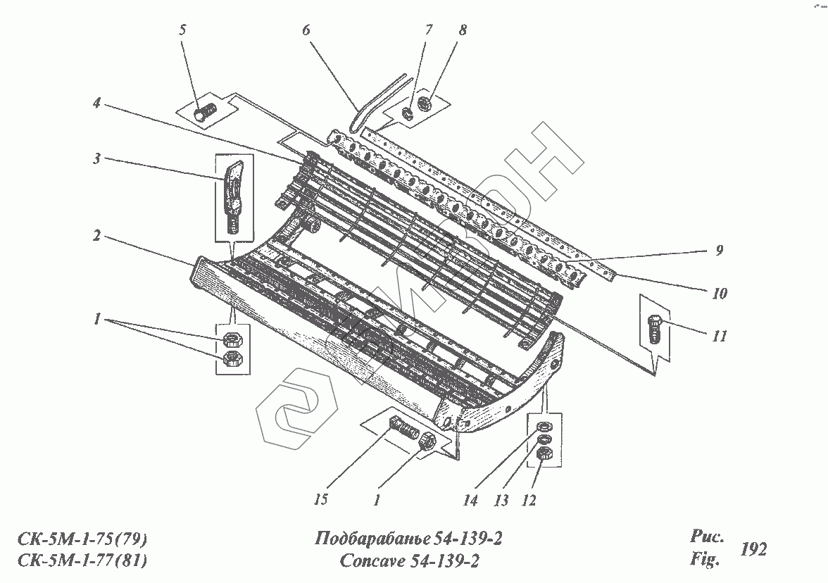 Графический каталог запасных частей к технике: РСМ CK-5М-1 «Нива». Подбарабанье 54-139-2