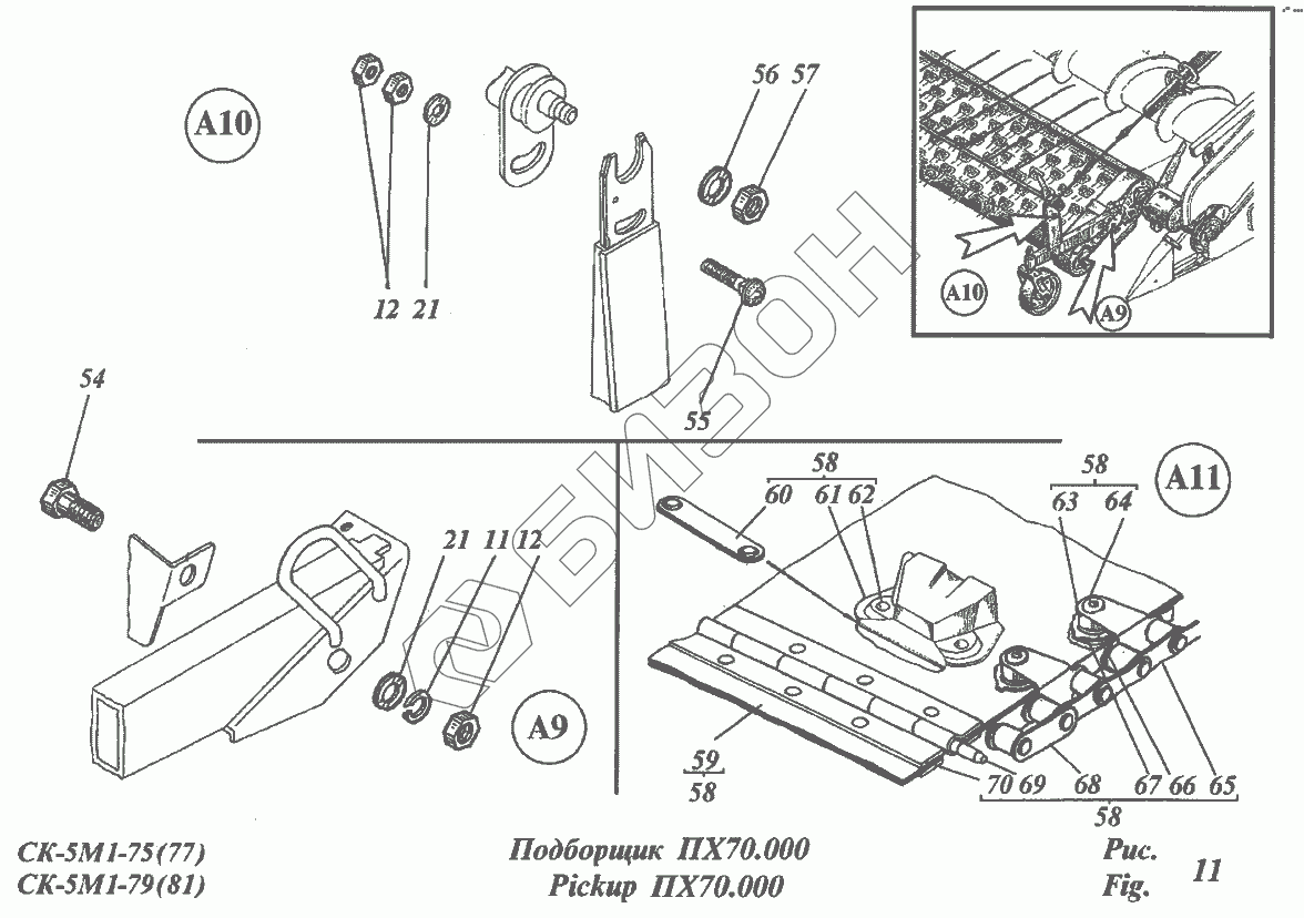 Графический каталог запасных частей к технике: РСМ CK-5М-1 «Нива». Подборщик ПХ70.000