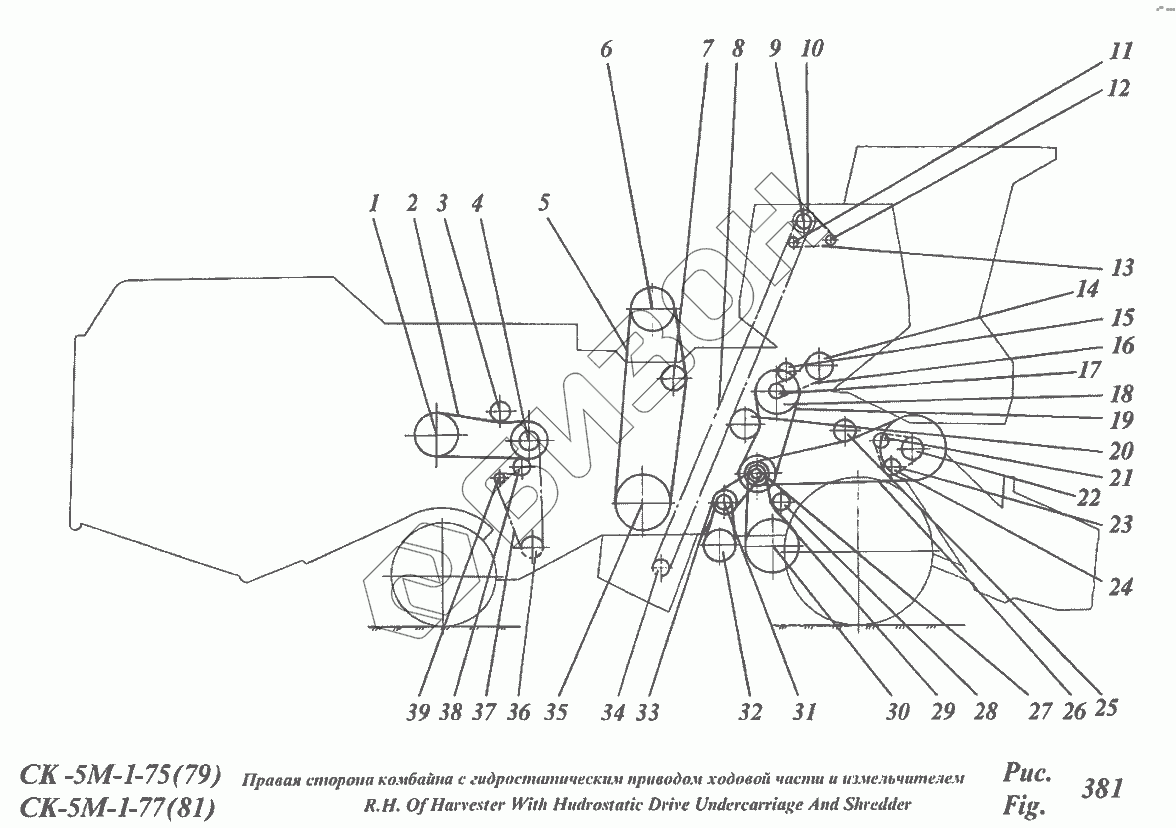 Графический каталог запасных частей к технике: РСМ CK-5М-1 «Нива». Правая сторона комбайна с гидростатическим приводом ходовой части и измельчителем