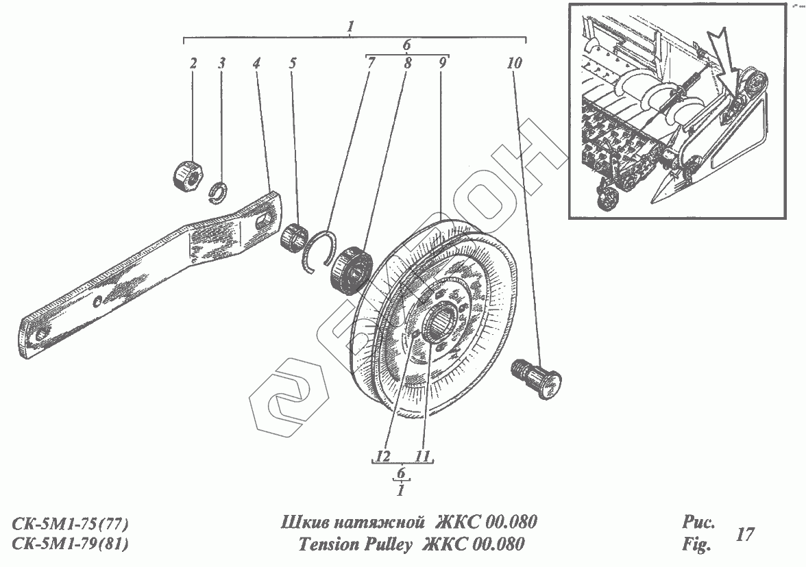 Графический каталог запасных частей к технике: РСМ CK-5М-1 «Нива». Шкив натяжной ЖКС00.080