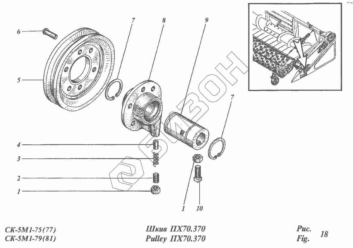 Графический каталог запасных частей к технике: РСМ CK-5М-1 «Нива». Шкив ПХ70.370