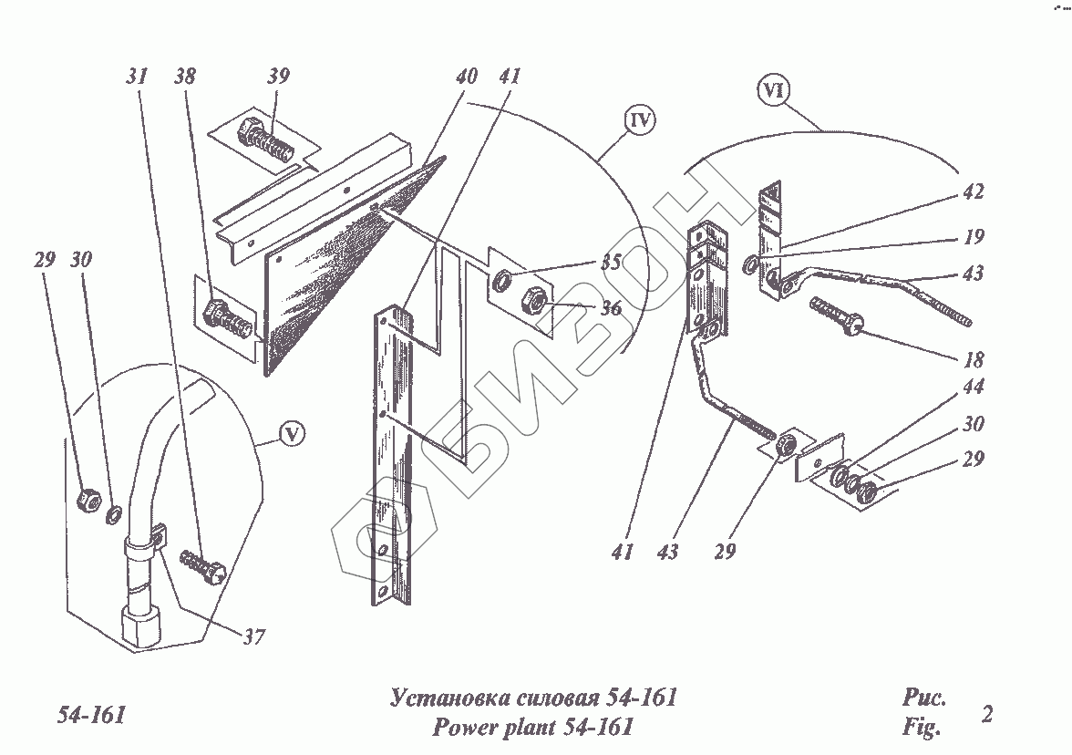 Графический каталог запасных частей к технике: РСМ CK-5М-1 «Нива». Установка силовая 54-161