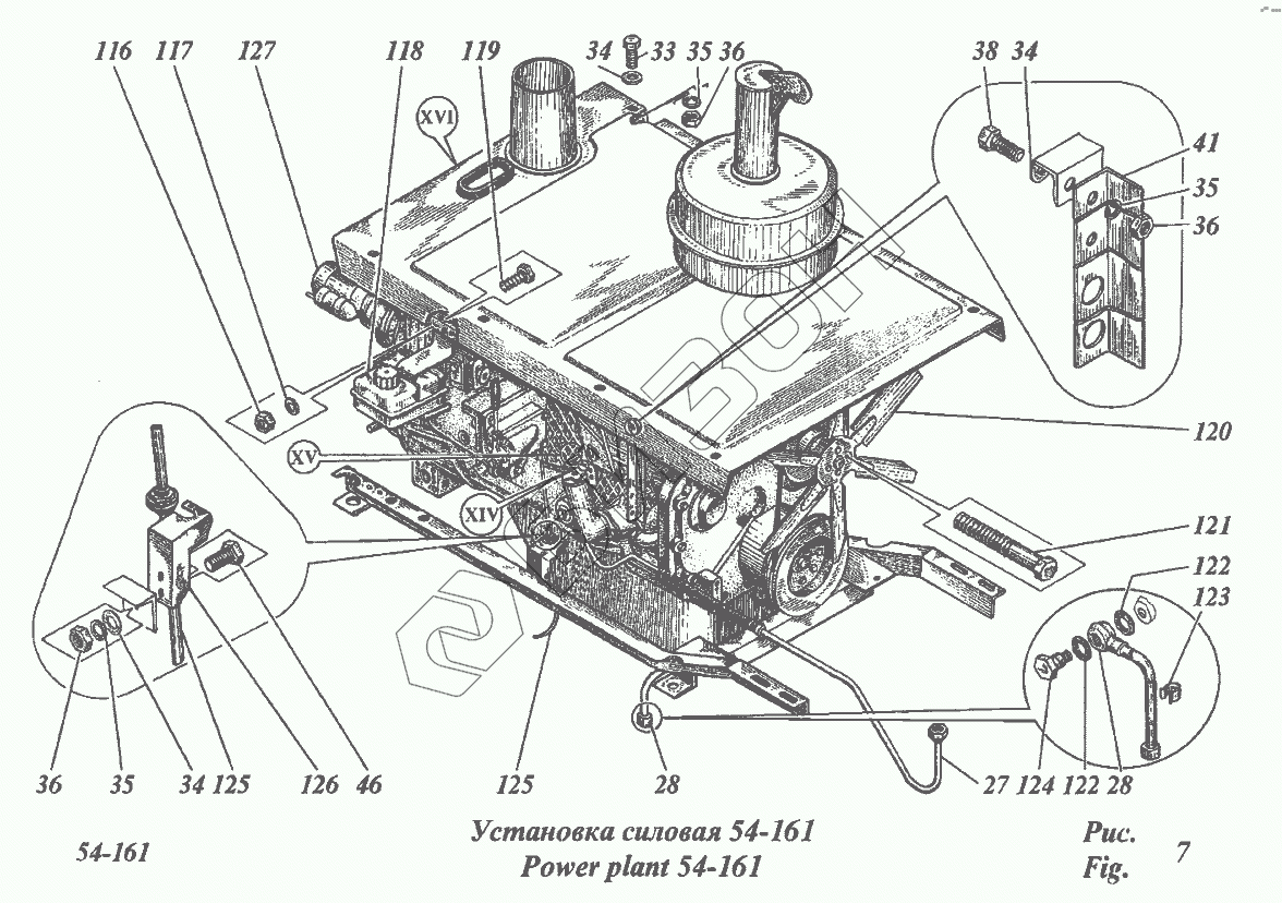 Графический каталог запасных частей к технике: РСМ CK-5М-1 «Нива». Установка силовая 54-161