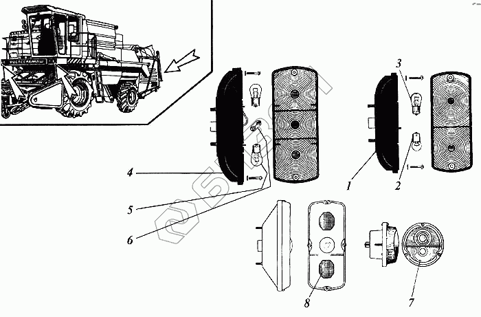 Графический каталог запасных частей к технике: РСМ Дон-1200Б. Фонари