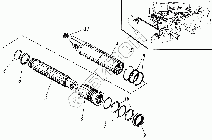 Графический каталог запасных частей к технике: РСМ Дон-1200Б. Гидроцилиндр