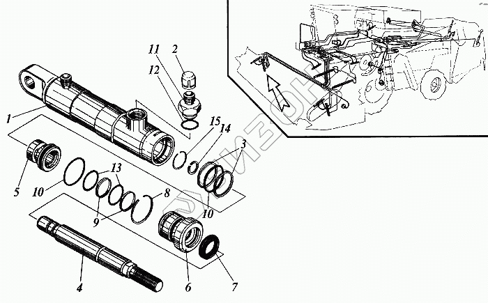 Графический каталог запасных частей к технике: РСМ Дон-1200Б. Гидроцилиндр