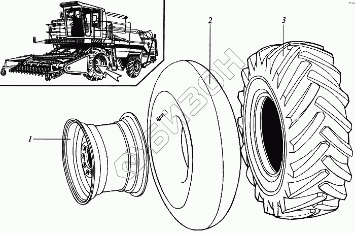 Графический каталог запасных частей к технике: РСМ Дон-1200Б. Колесо ведущее (левое и правое)