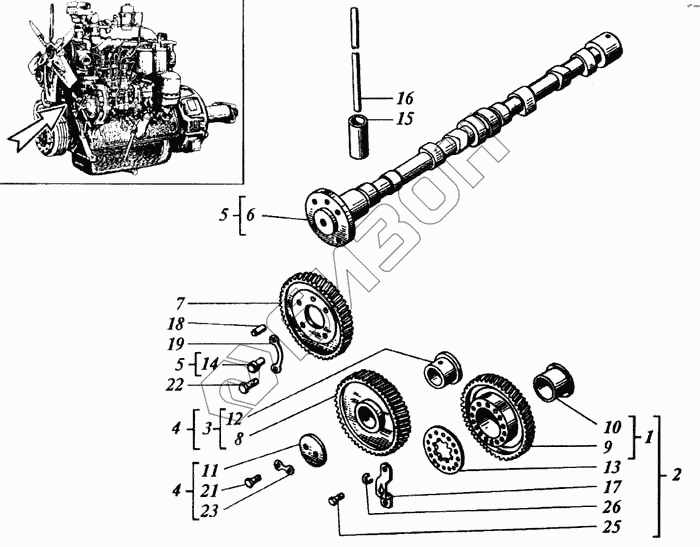 | 5 | 22-05С8 | Вал распределительный с подпятником |