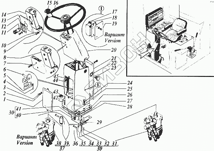 Графический каталог запасных частей к технике: РСМ Дон-1200Б. Рулевая колонка