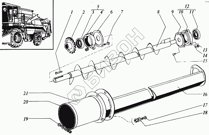 Графический каталог запасных частей к технике: РСМ Дон-1200Б. Шнек распределительный домолачивающего устройства
