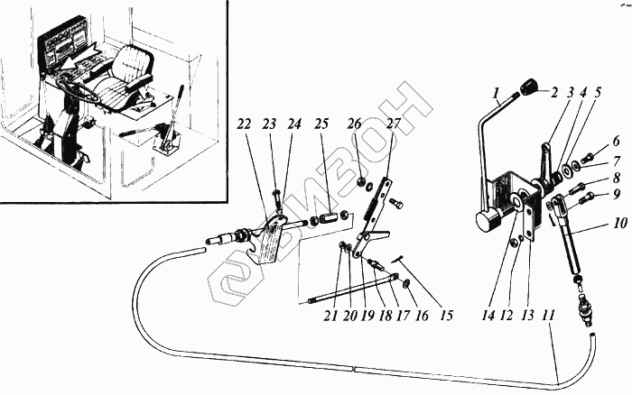 | 11 | 23.588.1.1.2.00-22 | Трос L=2500 мм (с двигателем СМД-23, СМД-31А) или 1.1.2.100.2500 |