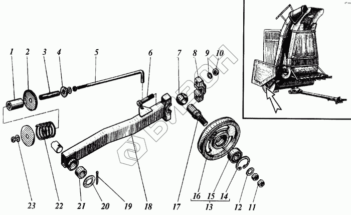 Графический каталог запасных частей к технике: РСМ Дон-1200Б. Установка ролика натяжного привода вентилятора