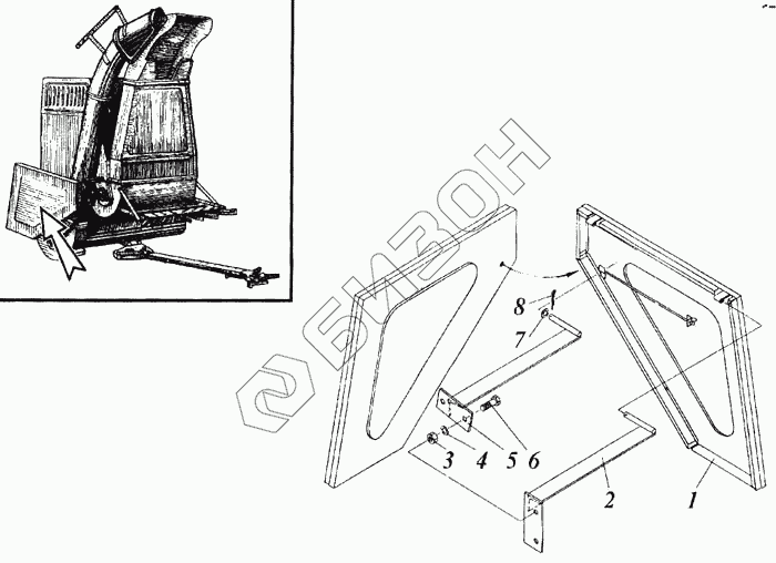 Графический каталог запасных частей к технике: РСМ Дон-1200Б. Установка щитка ограждения вентилятора