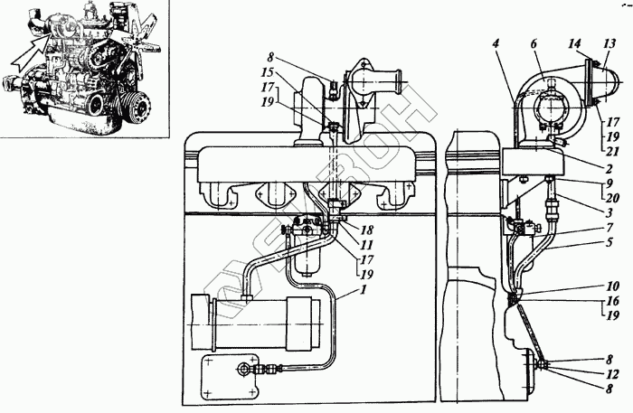 Графический каталог запасных частей к технике: РСМ Дон-1200Б. Установка турбокомпрессора