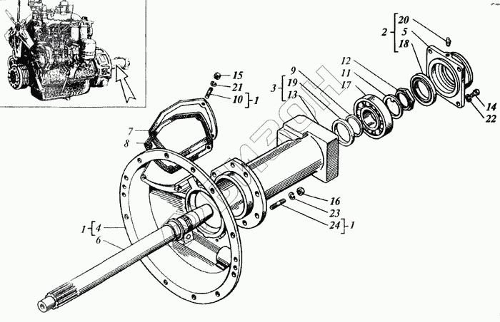 Графический каталог запасных частей к технике: РСМ Дон-1200Б. Установка вала съема мощности с маховика