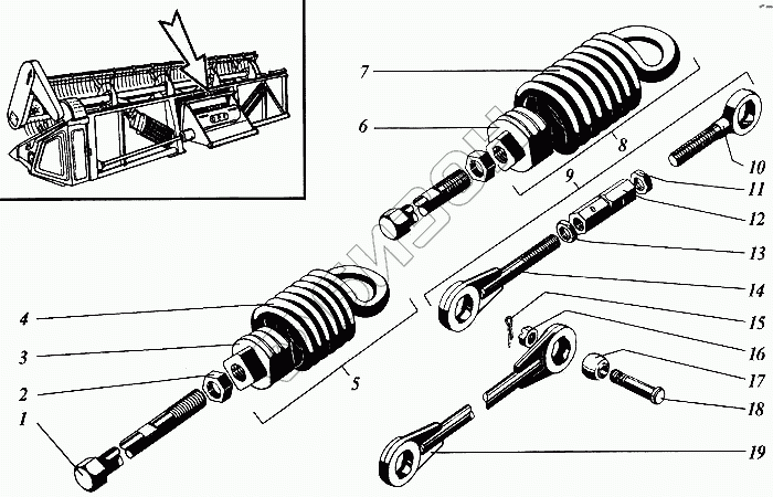 Графический каталог запасных частей к технике: РСМ Дон-1500А. Компенсатор и подвеска жатки