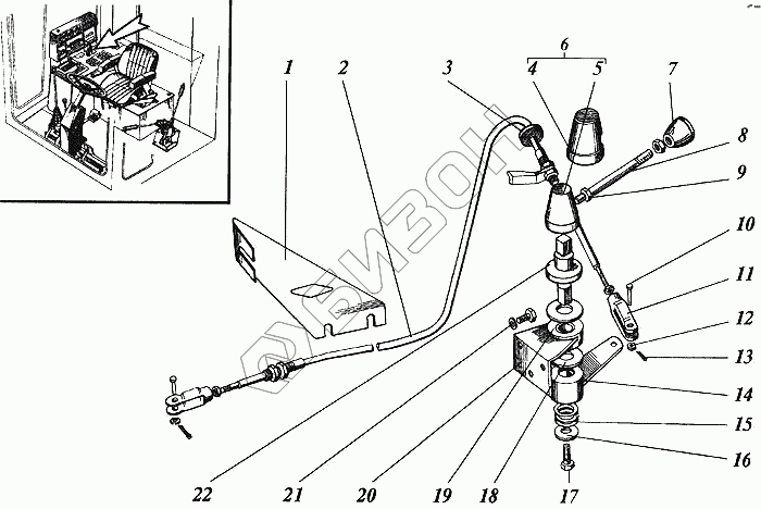 | 2 | 1.1.2.100.2500 | Трос L=2500 мм (с двигателем СМД-23, СМД-31А) или 23.588.1.1.2.00-22 |