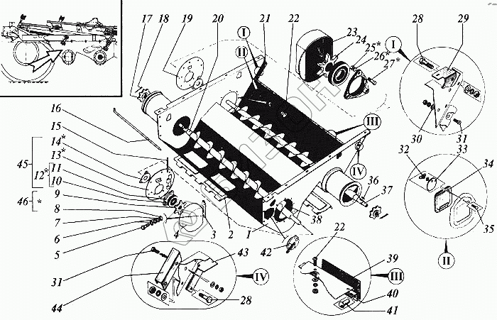 Графический каталог запасных частей к технике: РСМ Дон-1500Б. Блок шнеков