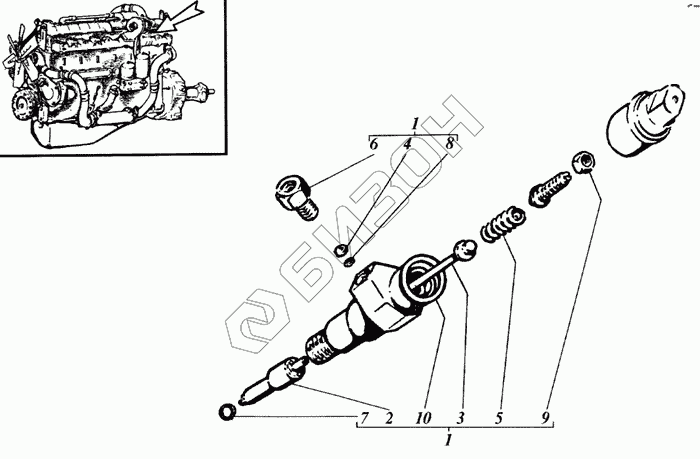 Графический каталог запасных частей к технике: РСМ Дон-1500Б. Форсунка