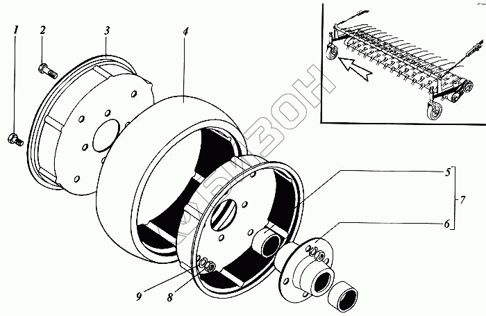 Графический каталог запасных частей к технике: РСМ Дон-1500Б. Колесо