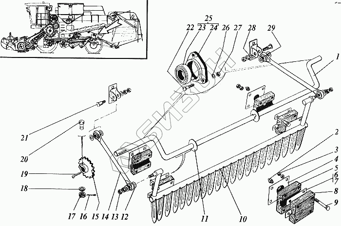Графический каталог запасных частей к технике: РСМ Дон-1500Б. Половонабиватель (для комбайнов с копнителем)