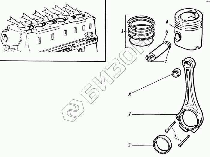 Графический каталог запасных частей к технике: РСМ Дон-1500Б. Поршень и шатун