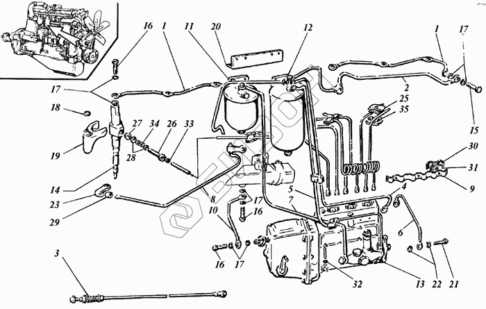 7 01М-15с28-1 Топливопровод от фильтра грубой очистки к топливоподкачивающему насосу