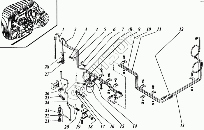 Графический каталог запасных частей к технике: РСМ Дон-1500Б. Топливопровод