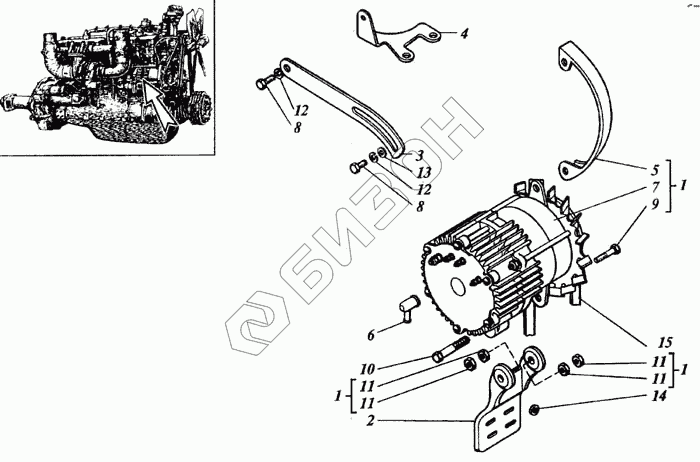 Графический каталог запасных частей к технике: РСМ Дон-1500Б. Установка генератора