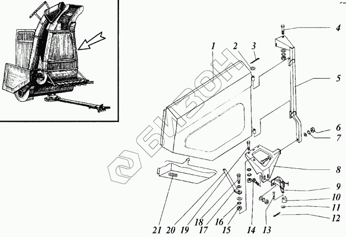 Графический каталог запасных частей к технике: РСМ Дон-1500Б. Установка щитка ограждения барабана