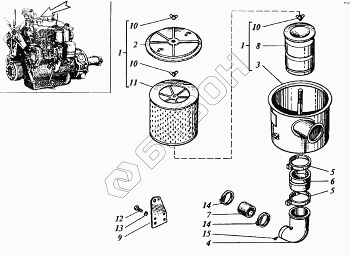 Графический каталог запасных частей к технике: РСМ Дон (общий каталог). Воздухоочиститель