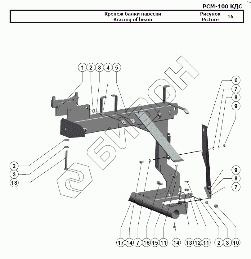 Графический каталог запасных частей к технике: РСМ-100 (Дон-680М). Крепеж балки навески