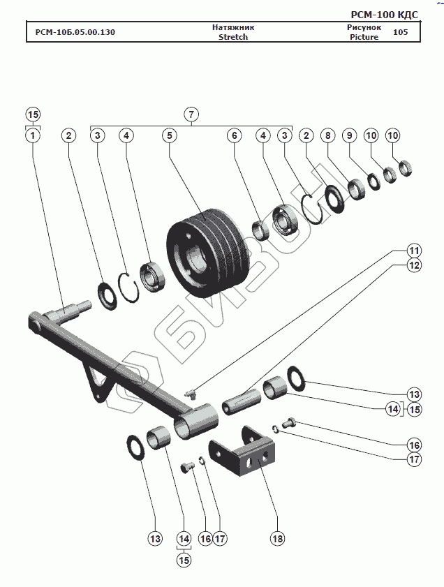 Графический каталог запасных частей к технике: РСМ-100 (Дон-680М). Натяжник