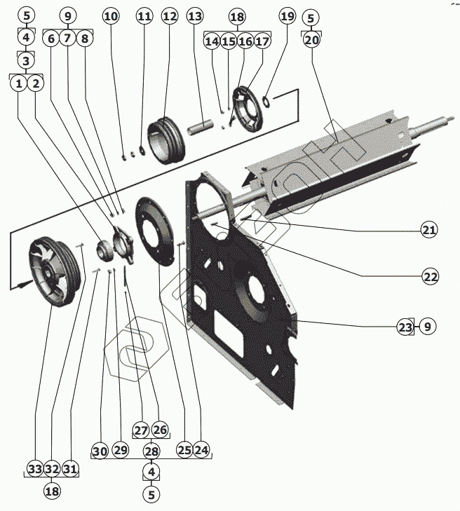 | 33 | РСМ-10.14.00.520 | Шкив для комбайна с измельчителем или РСМ-10.14.00.109 |