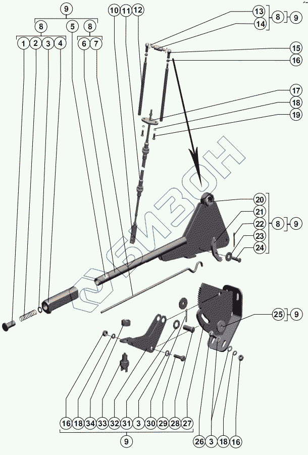 | 9 | 101.04.15.000 | Рычаг стояночного тормоза |