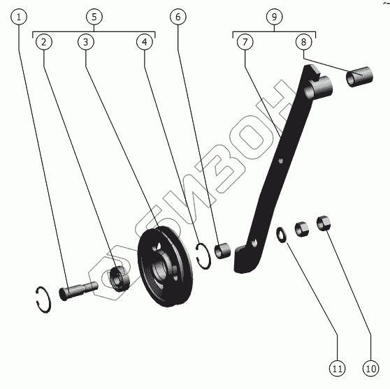 | 9 | РСМ-10.01.30.170Б | Рычаг с втулкой |