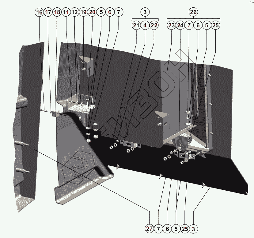 Графический каталог запасных частей к технике: РСМ-142 "Acros". Левое капотирование