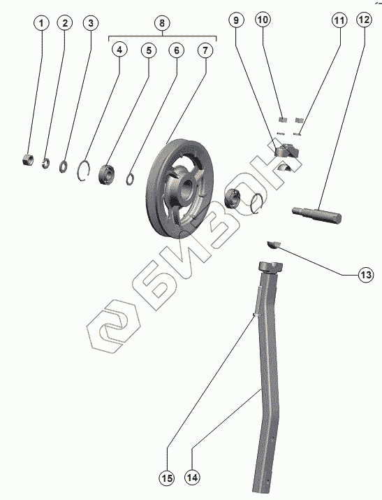 | 8 | РСМ-10.01.30.150Б | Шкив в сборе |