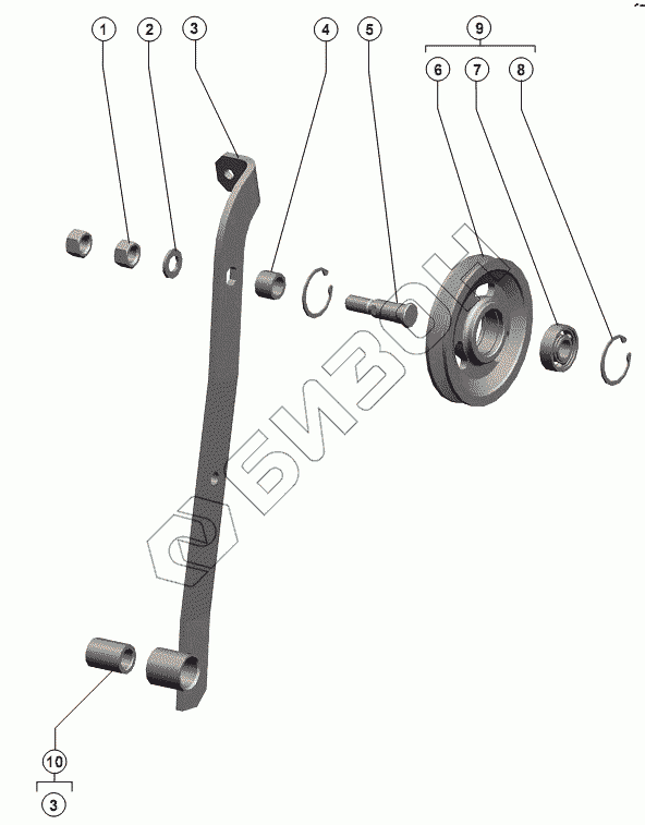 | 3 | РСМ-10.01.30.170Б | Рычаг с втулкой |