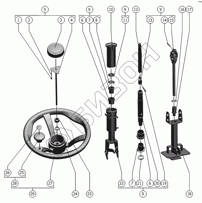 | 29 | МРУ-1.13.040 | Колесо рулевое |